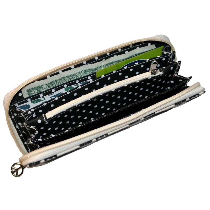 - PERFECTLY SIZED: Natural Cotton Canvas,100% Vegan, Measures 8 x 4 x 1 inches,4 interior card slots,1 interior clear ID slot. 1 interior zippered coin pocket. Signature peace-sign zipper pull