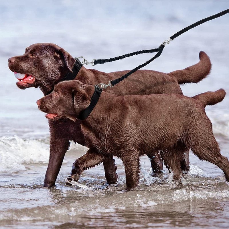 Bungee Double Dog Lead No Tangle Two 2 Dog Leash Coupler, For Walking Puppy, Small, Medium, Large dog, Adjustable 19.6 to 31.4 Inches (Black)