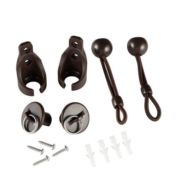Bungee Kit and End Cap Coolaroo Replacement Parts Roller Shades Outdoor/Indoor Roller Up Blinds Shade Tie Downs(Bungee kit and Pull Ring end caps, 1 Pack, Brown)