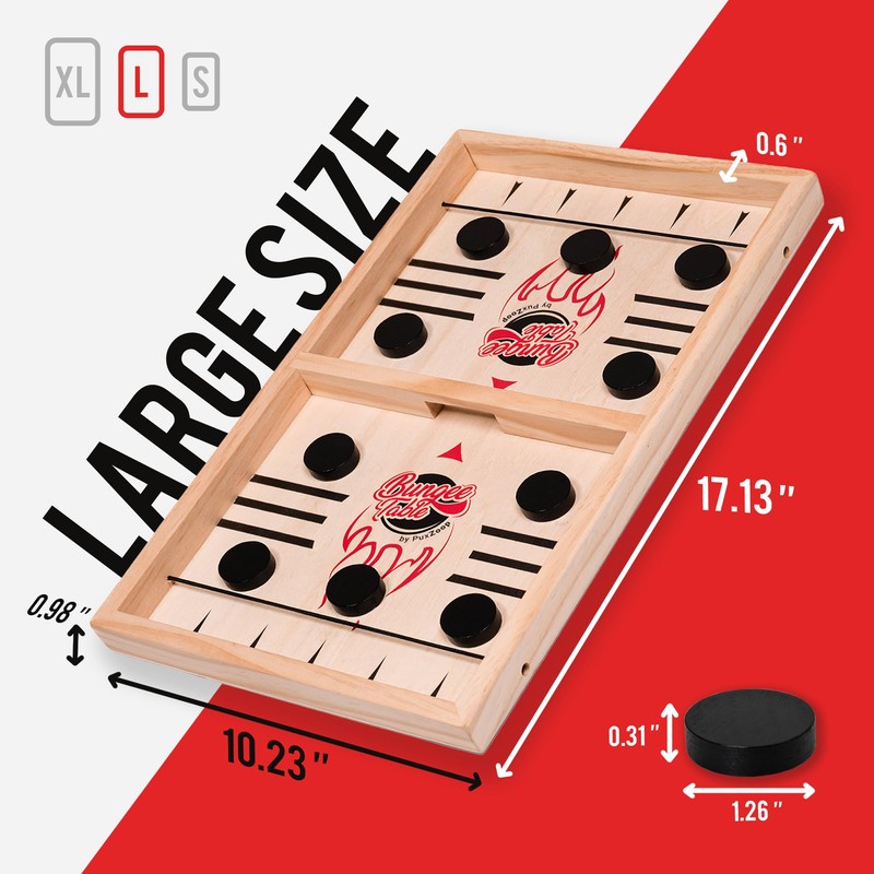 Bungee Table Fast Sling Puck Game - Large Size - Test Your Speed and Accuracy with This Fast-Paced Wooden Air Hockey Board Game - Guaranteed Fun for Family Night or Friends Party