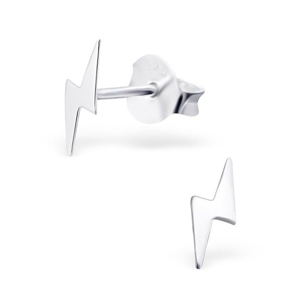 Bungsa Lightning Stud Earrings .925 Silver (Earrings Real Jewellery Studs Earrings Women Men), Silver, No Gemstone