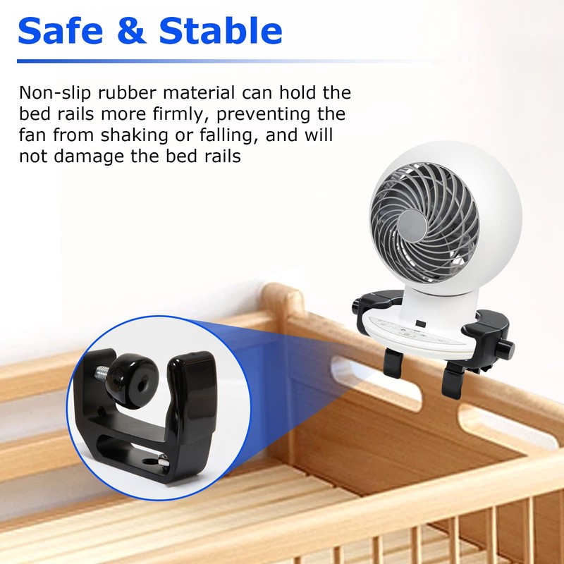 - Safe and Stable: anti-slip buckle and reinforced bracket design can firmly grasp the bed rails to prevent the fan from shaking or falling