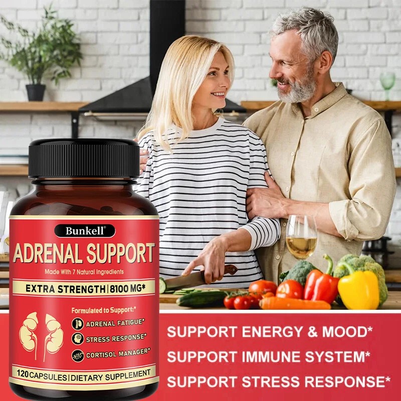 Bunkell Adrenal Support Supplement - Supports Healthy Adrenal Function 120 Capsules