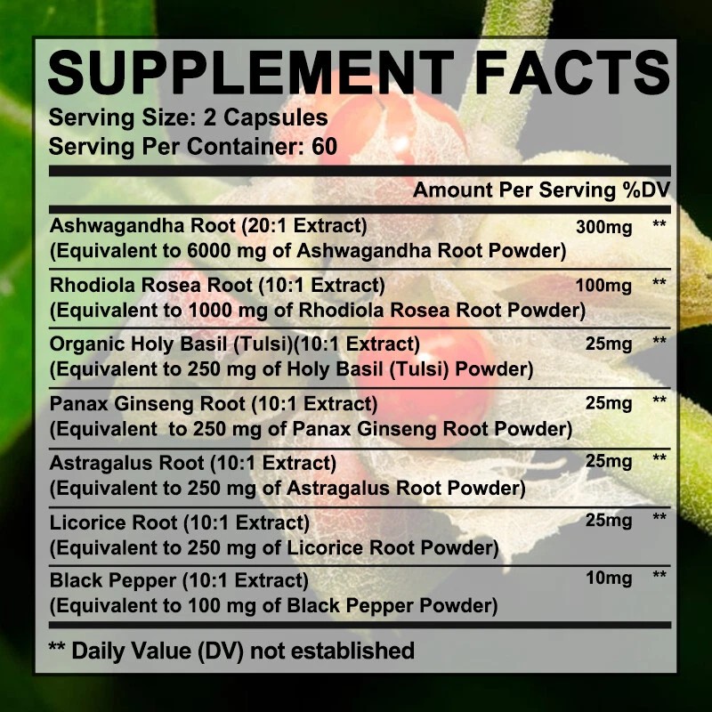 - Active Ingredients: ashwagandha