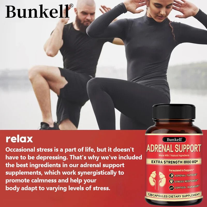 Bunkell Adrenal Support Supplement - Supports Healthy Adrenal Function 120 Capsules