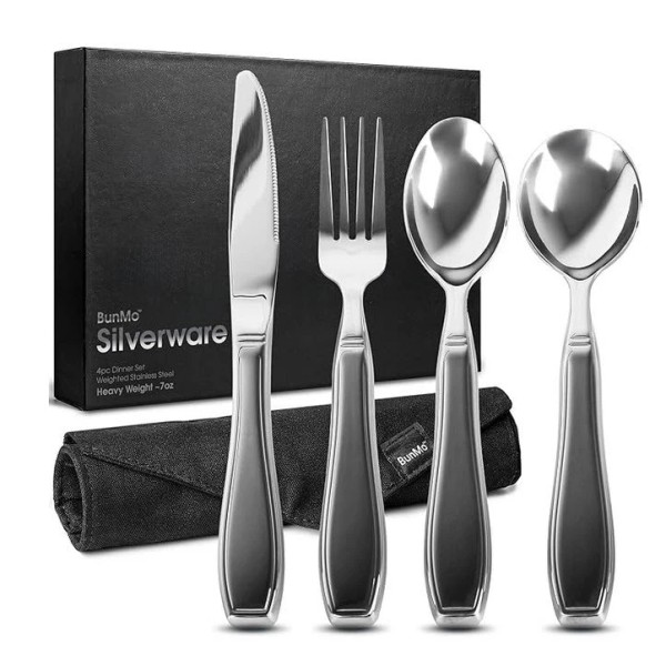 - Weighted utensils for shaking hands: Each utensil weighs a minimum of 7 ounce per piece