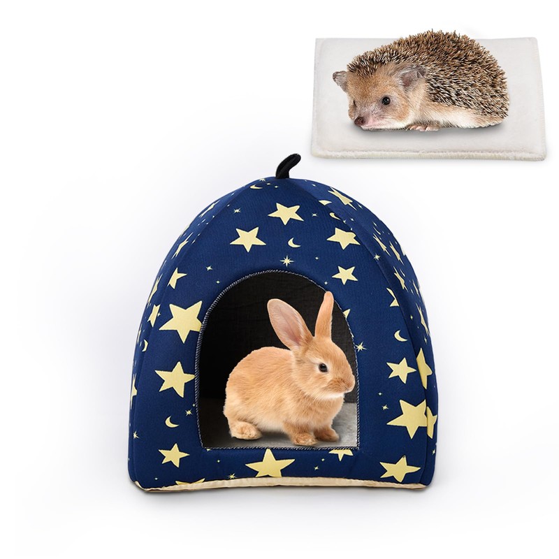 Bunny Hamster Hedgehog Guinea Pigs Chinchilla, Warm Beds and Caves Where Small Animals Hide (Blue)