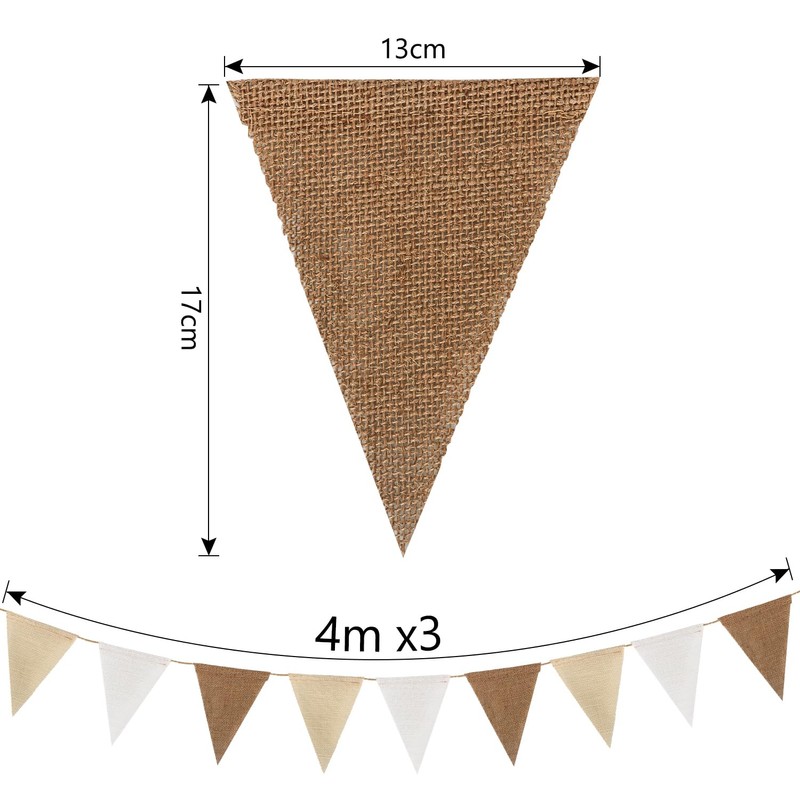 - Total length 12 metres - With 3 pre-assembled garlands of 4 metres in length, you will receive a total of 48 triangular flags (each 13 x 17 cm). This boho bunting immediately brings vibrancy and charm to your outdoor decoration - whether at weddings in the green, birthday parties or summer parties in the garden. The generous length perfectly covers fences, gazebos or marquees.