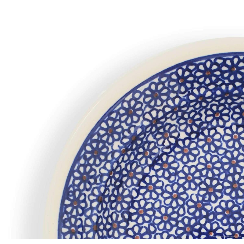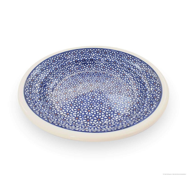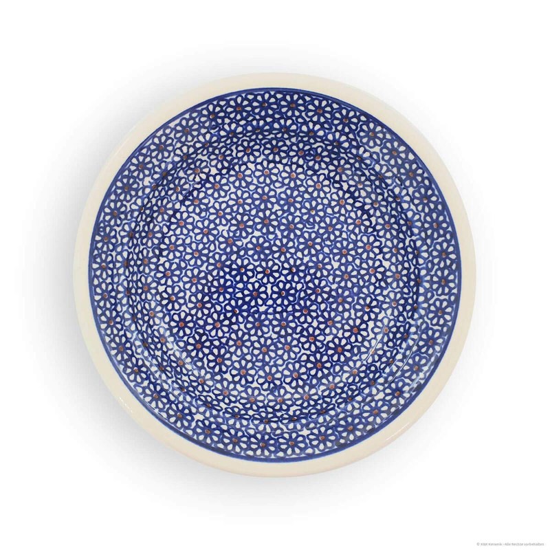 - Diameter = 21.8 cm, height = 4.0 cm, depth = 3 cm, G = 0.7 kg, decoration = 120 (Bunzlau blue blossom decor)