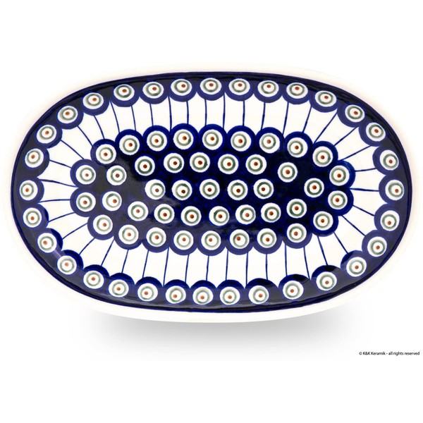 - Original Bunzlauer ceramic serving plate/plate oval in the famous Bunzlau peacock eye decoration no. 8 made of high-quality stoneware ceramic