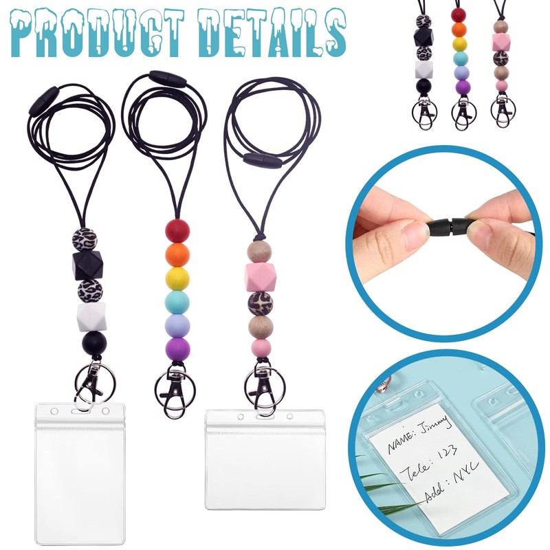 - Silicone Beaded Lanyard Set: This set comprises three silicone beaded lanyards in assorted colors and designs, 3 horizontal ID cases, and 3 vertical ID cases, suitable for various needs and preferences.