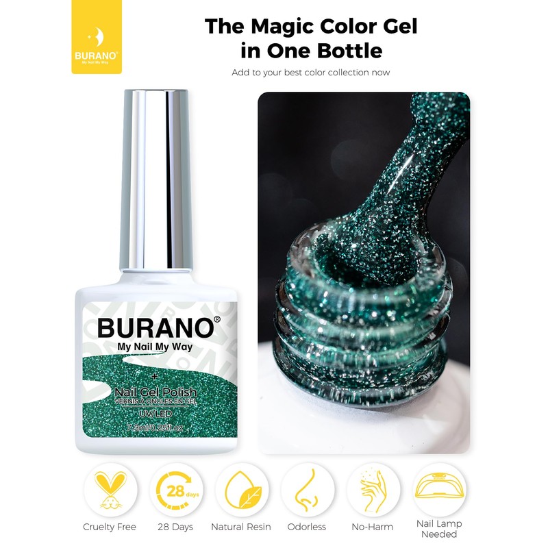 - Long Lasting For 21 Days: BURANO reflective glitter gel polish can last 21 days for your nail, gel polish colors diamond effects, no lifting, no damage sparkle colors nail polish, diamond polish for nails glitter nail gel polish