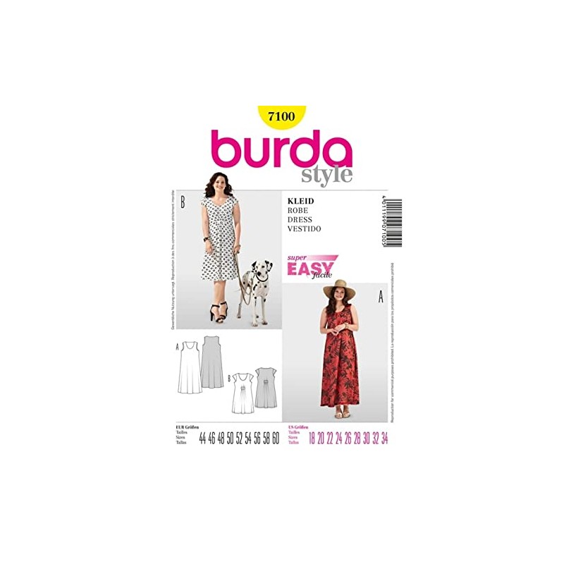 Burda Ladies Easy Sewing Pattern 7100 - Summer Dresses Plus Sizes: 18-34