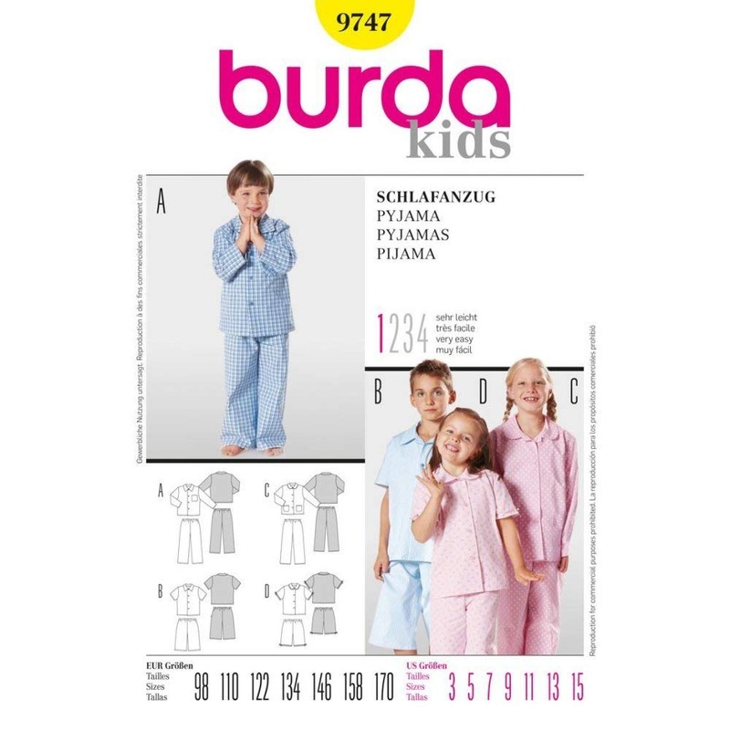 Burda Sewing Pattern 9747 Pyjamas Size 98-170