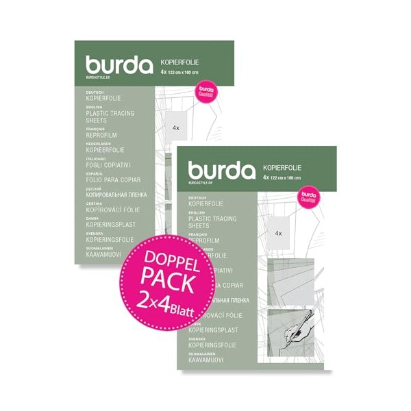 burdastyle Double Pack Copy Film 2 x 4 Sheets for Tracing Pattern Parts, Transparent