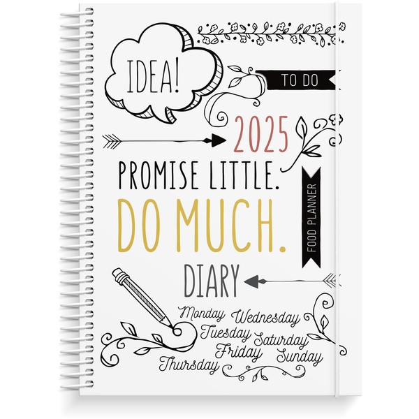 - Inspiring Doodle: Bursting with vibrant, playful designs, Doodle brings cheer to your planning. Express yourself with stylish stickers in this A5 diary with a convenient spiral-bound spine. Compact yet spacious for all your goals and plans, it's perfect for on-the-go use