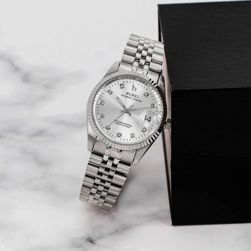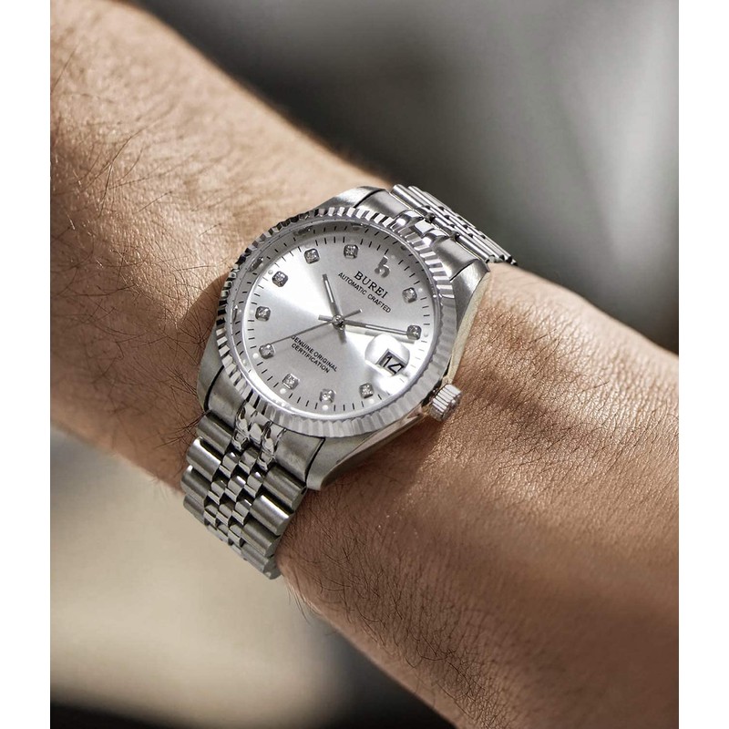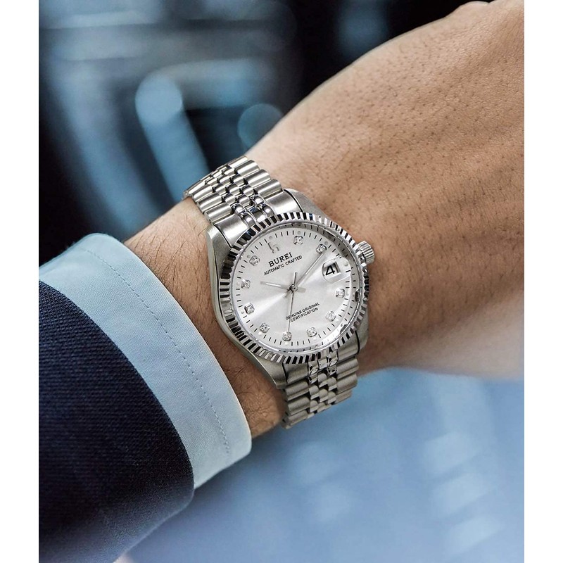- BUREI popular mechanical watches for men are made of high hardness, wear-resistant stainless steel. Precise polishing and advanced vacuum plating technology on the watch surface, AAA grade zircon inlay, watch lens is made of sapphire crystal