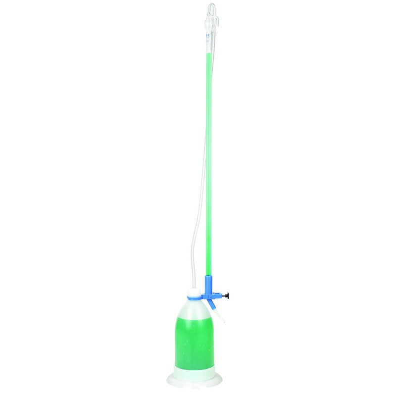 - SELF-ZEROING || Completely closed system; squeezing the bottle fills the burette just over the zero line, and excess liquid is returned to the reservoir bottle