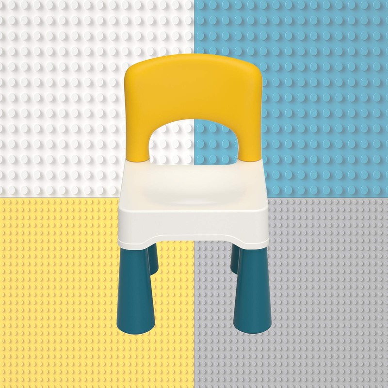 - Compatible with the burgkidz activity table: this chair is part of the Burgkidz building block table in the colour blue/pink/yellow/macron at child-friendly height. Chair dimensions: 26 x 25.5 x 43 cm (10.3 inches W x 10 inches D x 17 inches H), seat height of the chair: 23.6 cm (9.3 inches), backrest height: 19.5 cm (7.7 inches), chair weight up to 100 kg/220 lb