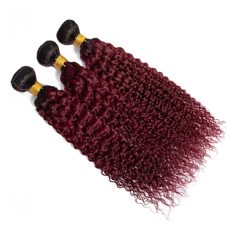 - Hair Color:1B99J Two Tone Black And Burgundy Ombre Kinky Curly Hair Bundles