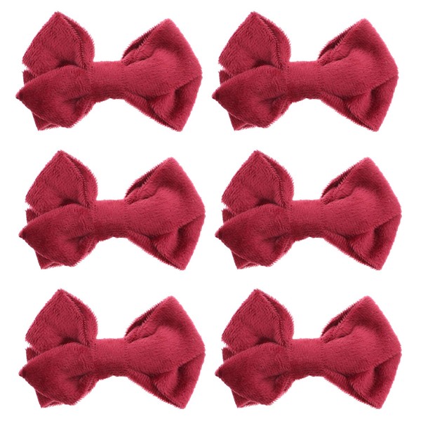 Burgundy Velvety Hair Bow With Alligator Clip For Girls - Set of 6