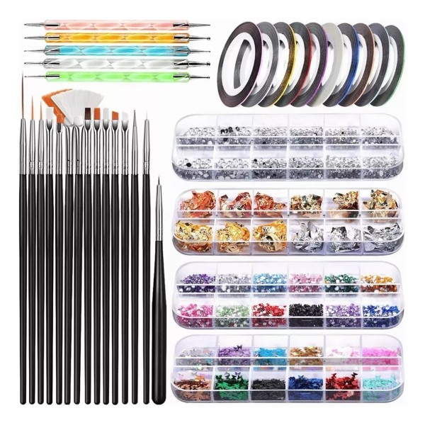 ¡Disfruta de tu imaginación, crea lo que quieras! : Los artículos estaban bien para decorar con variedad. Los pinceles fueron el mayor éxito; Los diamantes brillantes son pequeños pero coloridos y de varios tamaños; La cinta de uñas se pega bien; Las hermosas opciones de colores de las pegatinas de papel de aluminio de Paillette son fáciles de aplicar, y el popular brillo de uñas de mariposa holográfico también es increíble