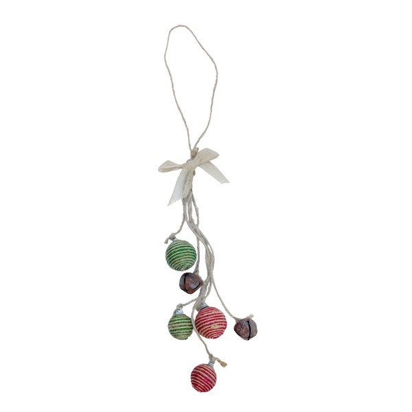 - Burlap Ball Hanger Accented with Rustic Aged Bells