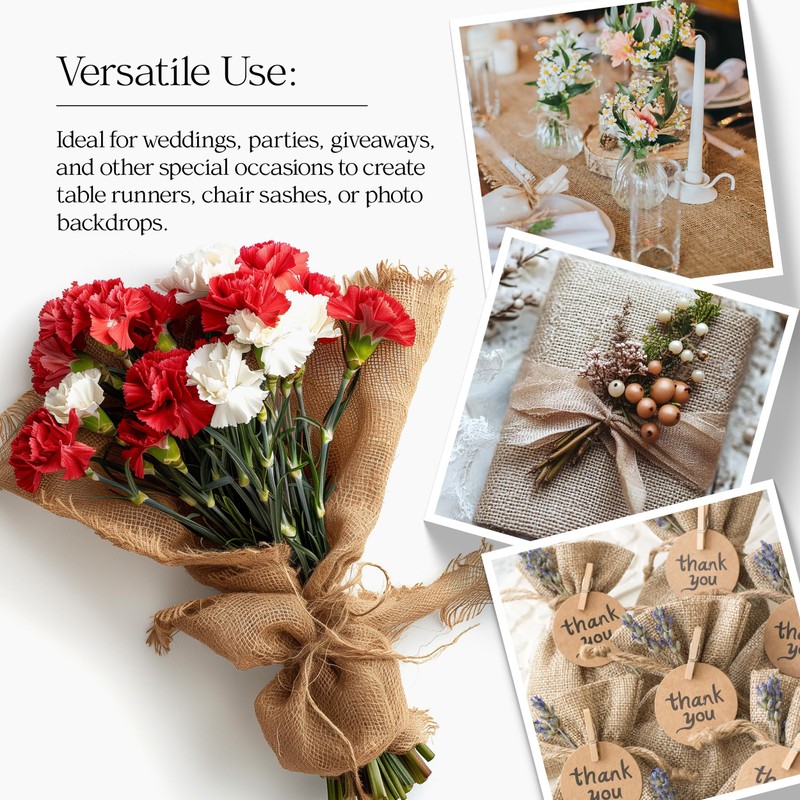 - Elegant and Rustic Decor: The smooth machine-cut design and natural color make this burlap fabric perfect for adding a vintage touch to weddings, parties, and home decor.