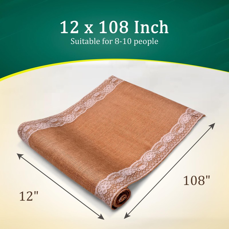 - Elegant Lace Design: This rustic burlap table runner is decorated with floral embroidered white lace at the edges for a sleek and vintage look. 12 x 108 burlap fabric runner is long enough to cover the full length of the table and is suitable for round, square and rectangle tables.