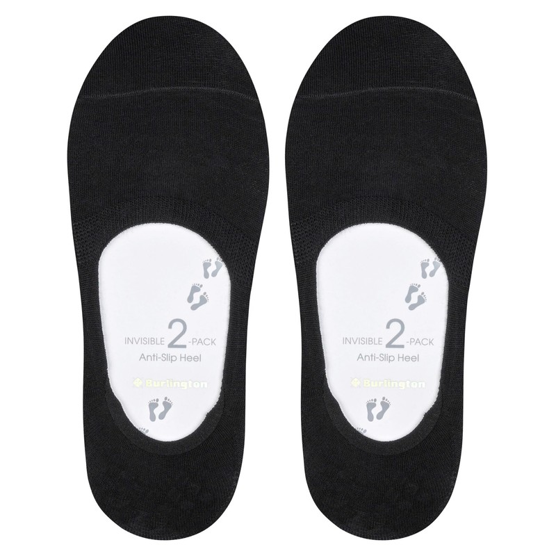 Burlington Women's Everyday Multipack W In Cotton No-Show Plain 2 Pairs Liner Socks, Black 3000, 5.5-6.5