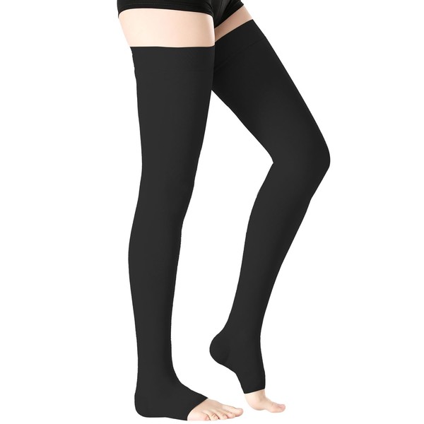 BURLWAY Open Toe Thigh High Medical Compression Stockings For Women & Men Circulation,20-30 mmHg Graduated Support Hose Compression Socks For Varicose Veins,Edema,Swelling,DVT