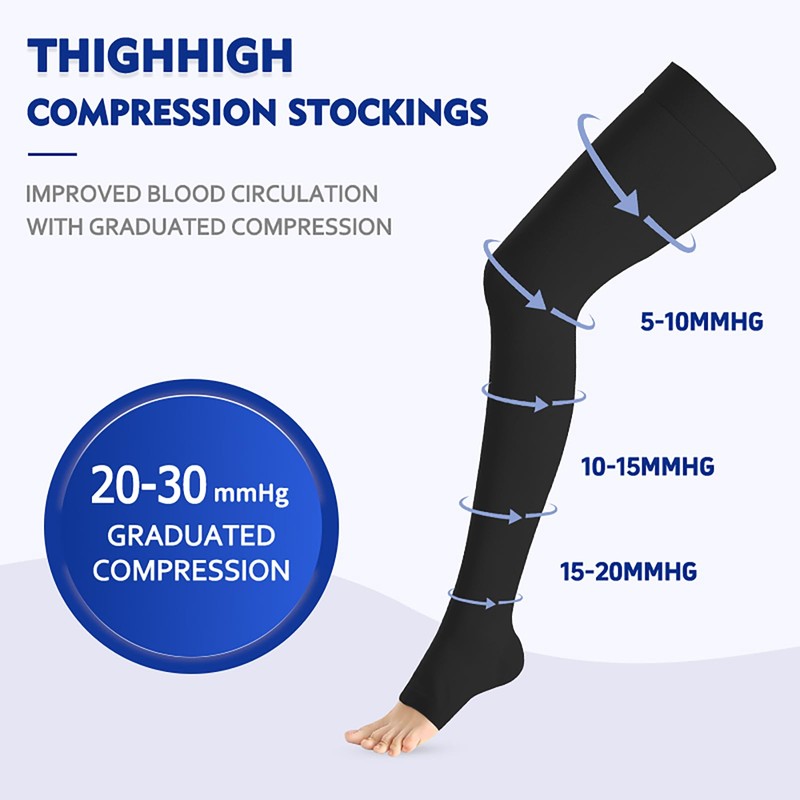 BURLWAY Open Toe Thigh High Medical Compression Stockings For Women & Men Cir...