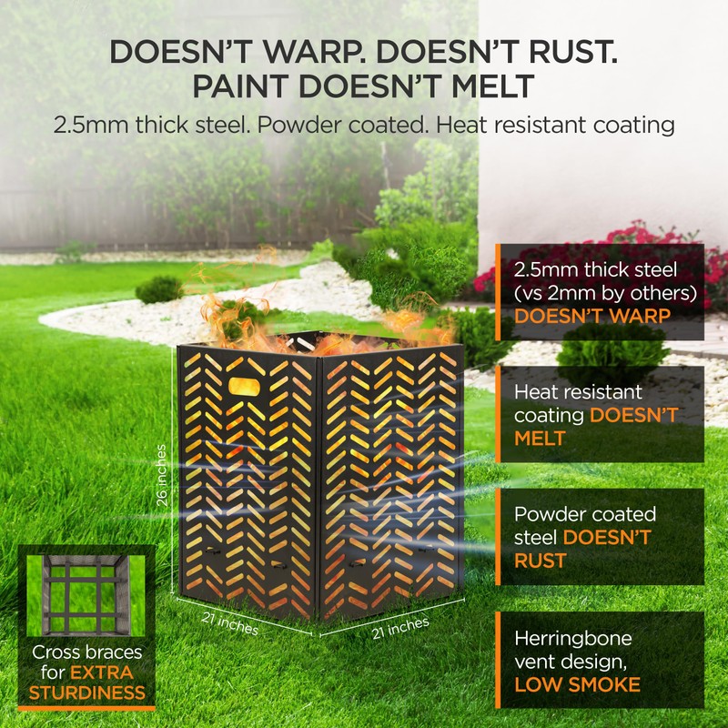 - HOLDS 55 GALLON burn barrels standard size 26”x21”x21” making it perfect burn barrel for outside for burning trash, yard waste and paper incineration.