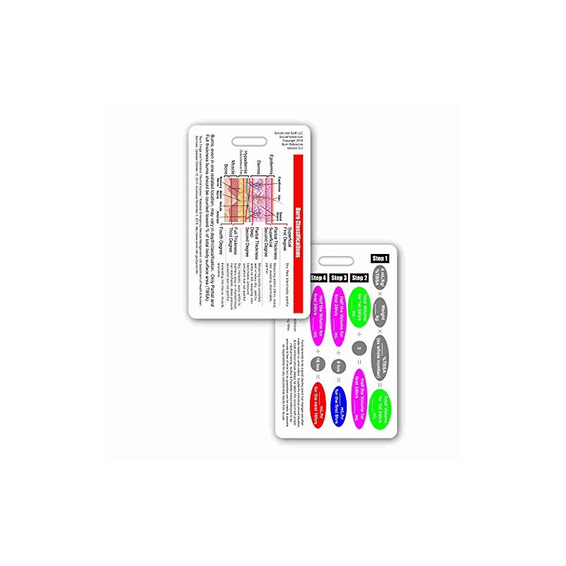 - This card features a skin layer cross section with associated burn depth levels and a step by step guide to the Parkland Formula