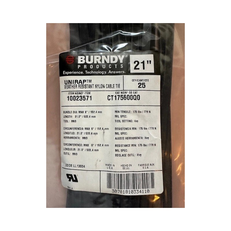 BURNDY CT175600Q0 CABLE TIE 21" BLACK (25 PC)