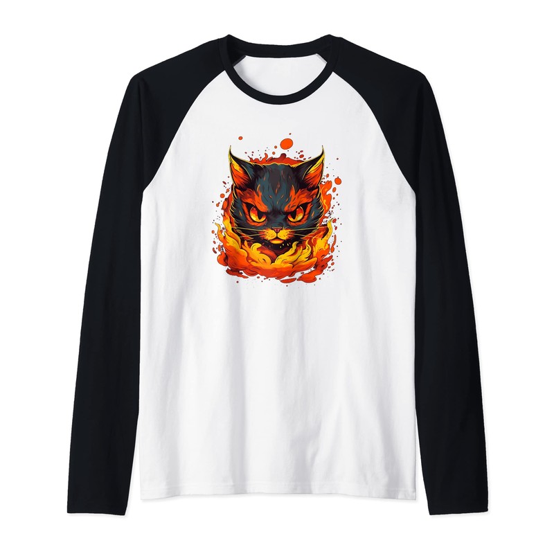 Burning Hellcat with Flames for Fire Sport training Raglan Baseball Tee