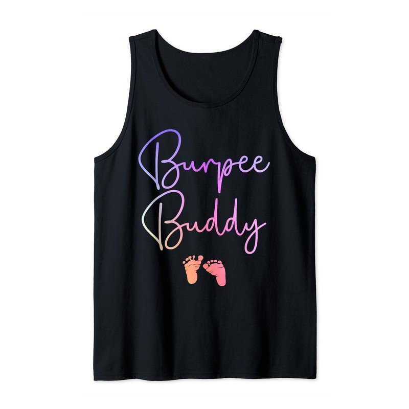- Funny and unique Burpee Buddy Pregnancy Workout top. Funny apparel/merch. Great for pregnancy wife, friend, sister or aunt. Great for gym, gym lovers, Workout, fitness, yoga or for everyday wear! Cool watercolor font design.
