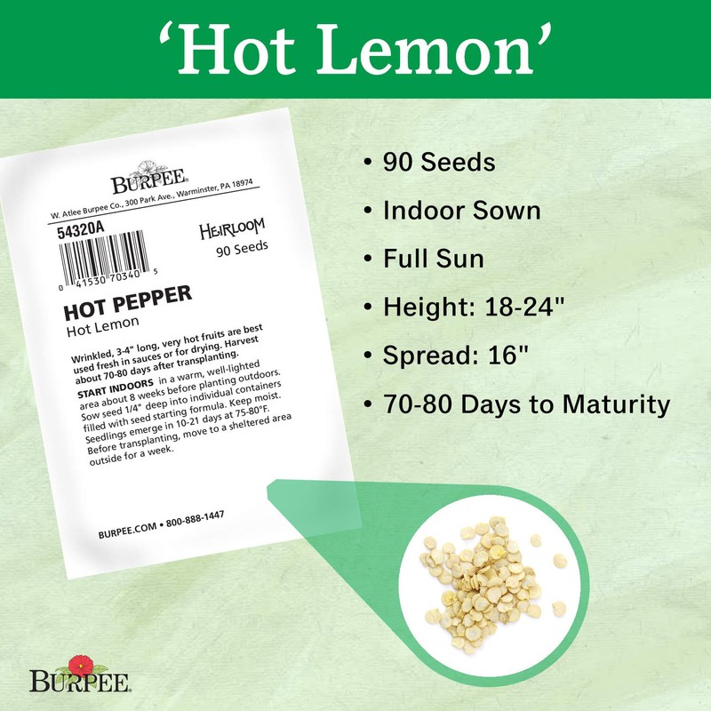 - CLASSIC VARIETIES: Get the best of our best with Burpee’s “Lemon" pepper seeds for planting. Each variety is handpicked by our expert team here at Burpee to provide the most complete & successfull pepper gardening experience.