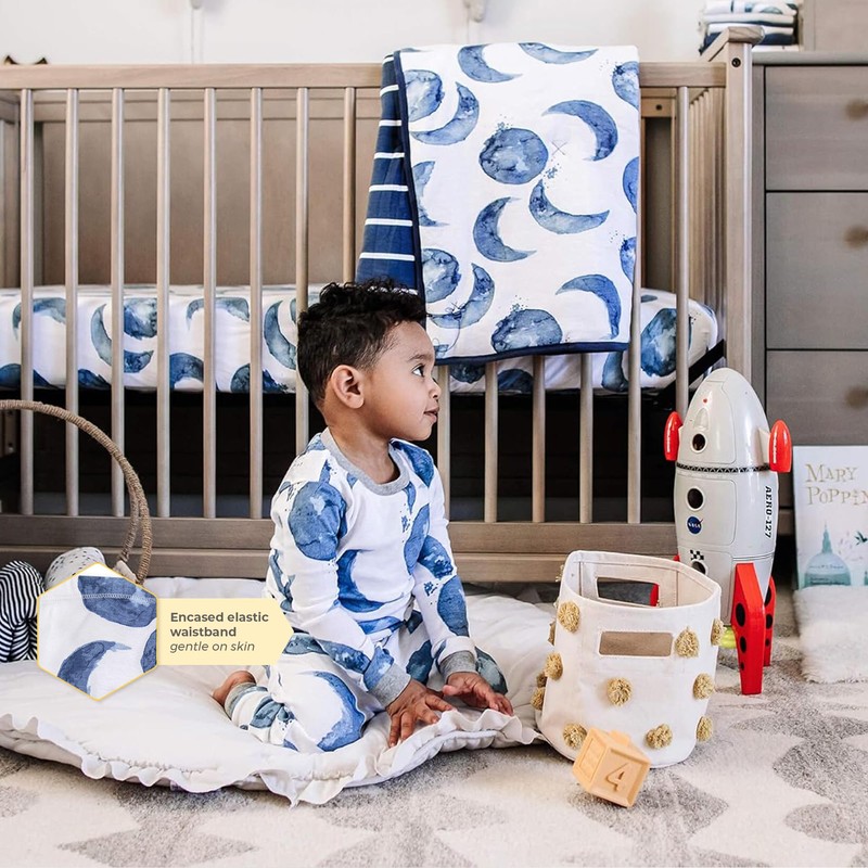 Burt's Bees - Conjunto de Pijamas Unisex para bebé, Playera y pantalón, 2 Piezas, 100% algodón orgánico, Indigo Hello Moon, 24 Meses