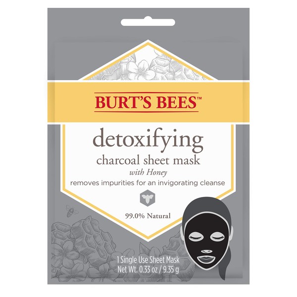 - CHARCOAL FACE MASK: Burt's Bees detoxifying charcoal and honey sheet mask is a 99% natural origin facial mask that is formulated for all skin types including sensitive skin