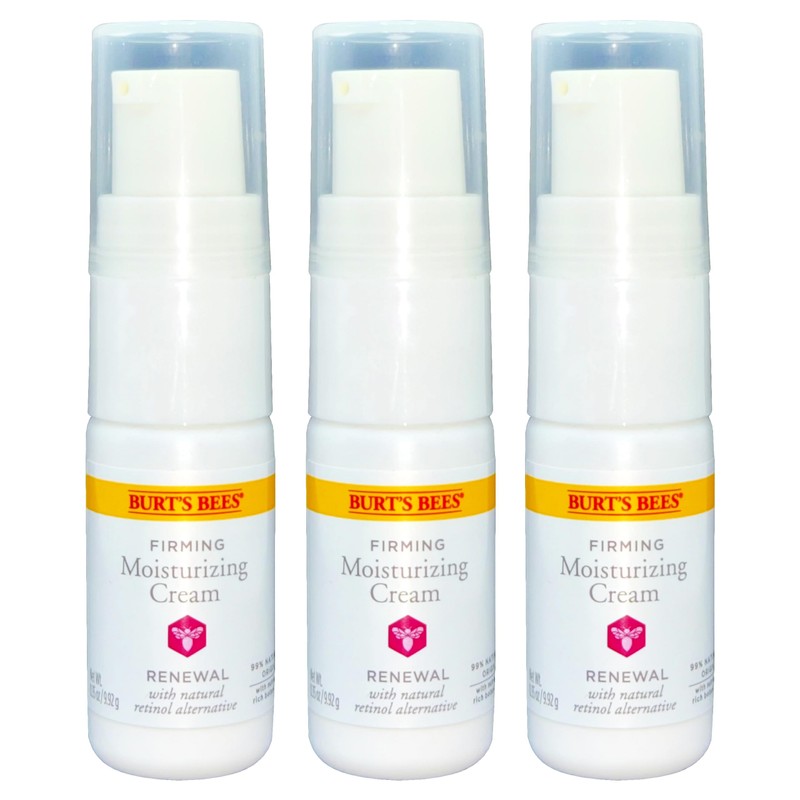 Burt's Bees Renewal Firming Moisturizing Cream, 3-Pack (0.35 oz Each), Hydrating Daily Moisturizer Facial Cream with Bakuchiol Natural Retinol Alternative, Fragrance Free, Travel Size