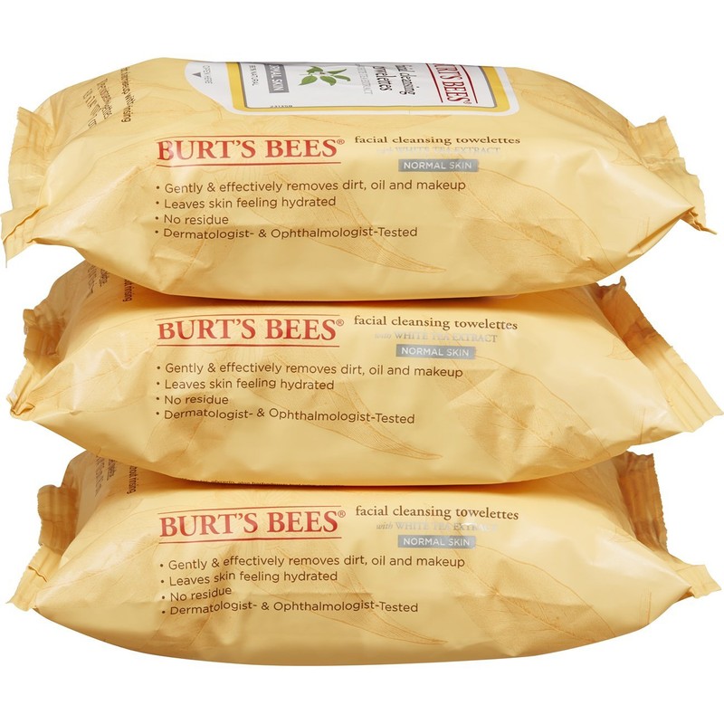 Burt's Bees Facial Cleansing Towelettes, White Tea Extract, cleanse your face in one easy step without ever having to rinse. They are specially formulated for all skin types. They gently remove dirt, oil, and makeup. Infused with white tea extract, calming cucumber and aloe, they leave your skin feeling smooth and naturally clean. They are 99.1% natural, dermatologist and ophthalmologist-tested and contain no parabens, phthalates or petrolatum. Since no rinsing is necessary, you can use these disposable wipes anytime, anywhere.
