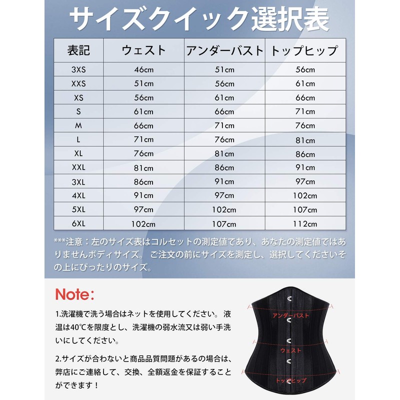 - 使用場合:このコルセットのレデイースベルトは、おしゃれのウェストマークとも、スリムベルトとも言えます。クラシックなタイプで、自分用でもプレゼント用でも良いです!ドレスの着用時やコスプレや結婚式の際にもお使い頂けます。「サイズが合わないと商品品質問題があるの場合は、弊店にご連絡して、交換、全額返金を保証することができます!」商品のサイズは個人差によるので、ショッピングに悪い体験を及ぼすことがあります。サイズを選択する時サイズ表を参照してください。