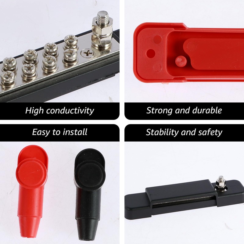 - Stable performance: Our bus bar features a flow bar design that optimises performance and makes the use more stable. It can withstand high torques and does not wobble when loosening the nut. Easy to Use Simply attach the battery poles with screws and tighten the nuts.