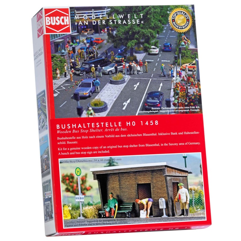 Busch 1458 Wooden Bus Stop Shelter HO Structure Scale Model Structure