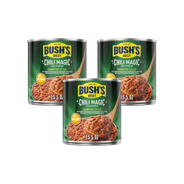 - Stock your pantry with 15.5 Oz recyclable cans of Bush’s Campfire Style Chili Magic Chili Starter