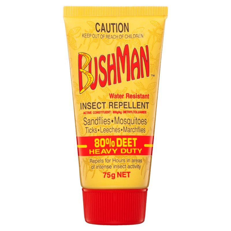 Bushman Water Resist Insect Repellent 80% DEET Heavy Duty repels for hours in areas of intense insect activity. Repel sandflies, mosquitoes, ticks, leeches and marchflies.