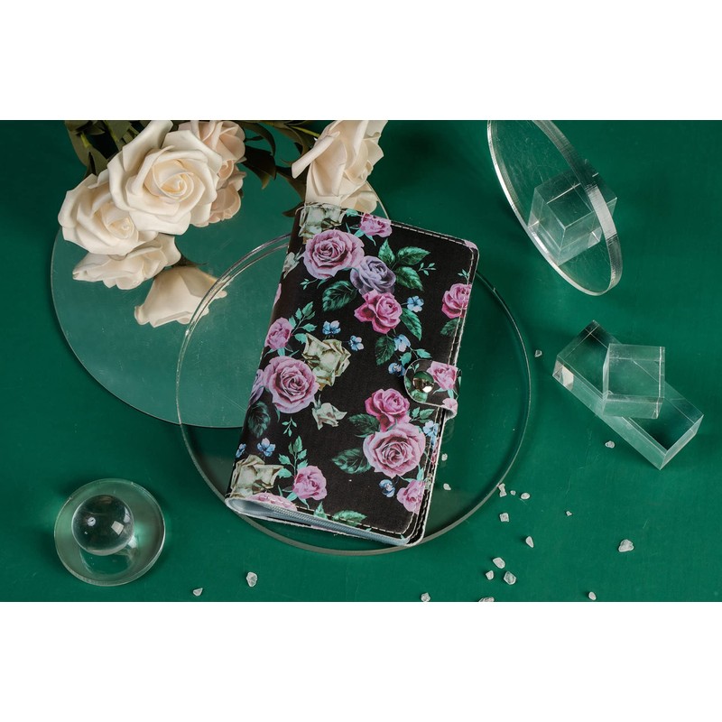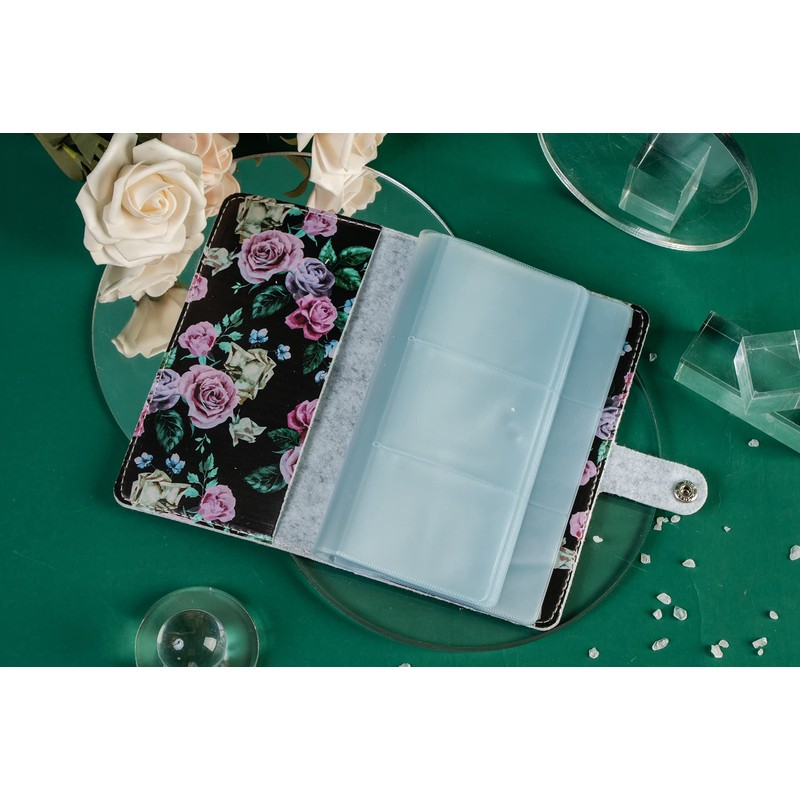 Business Card Holder Book, LIZIMANDU Business Card Book Case PU Leather Organization Binder Name ID Card Holder for Men & Women, Up to 96 Cards Capacity, 1-Black Rose, 1 Pack, Modern