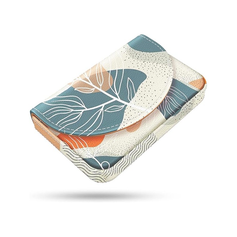 Business Card Holder,PU Leather Business Card Case Color Printing Pattern Card Holder Wallet,Pockets Magnetic Credit Card Holders for Men and Women,Bohemian Leaf