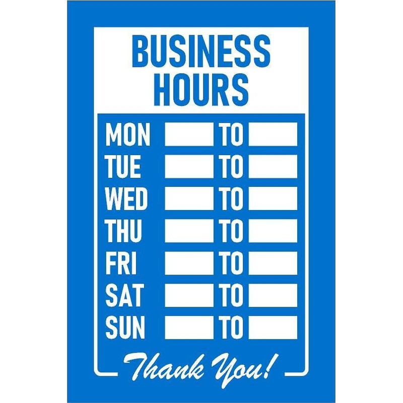 Business opening hours blue sign - 3mm Aluminium sign (200mm x 150mm)